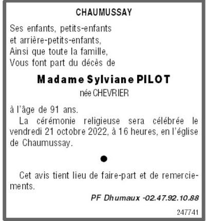Madame Sylviane PILOT née CHEVRIER