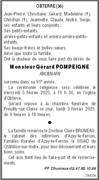 Décédé à Obterre (36290, France) le samedi 1 février 2025 à l'âge de 90 ans