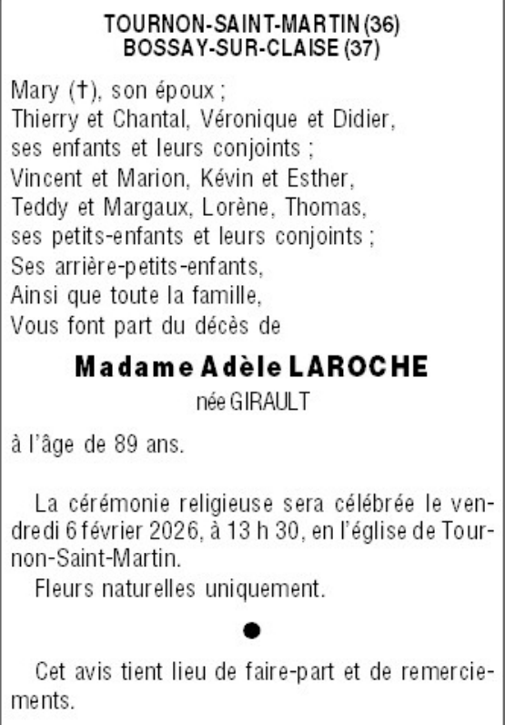 Décédée à Le Blanc (36300, France) le lundi 2 février 2026 à l'âge de 89 ans