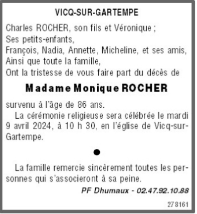 Veuve de Monsieur Jean-Claude ROCHER