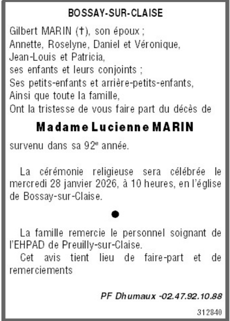 Veuve de Monsieur Gilbert MARIN