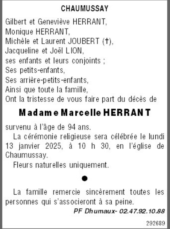 Veuve de Monsieur GUY HERRANT