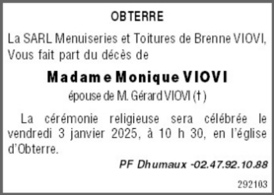 Décédée à Obterre (36290, France) le samedi 28 décembre 2024 à l'âge de 88 ans