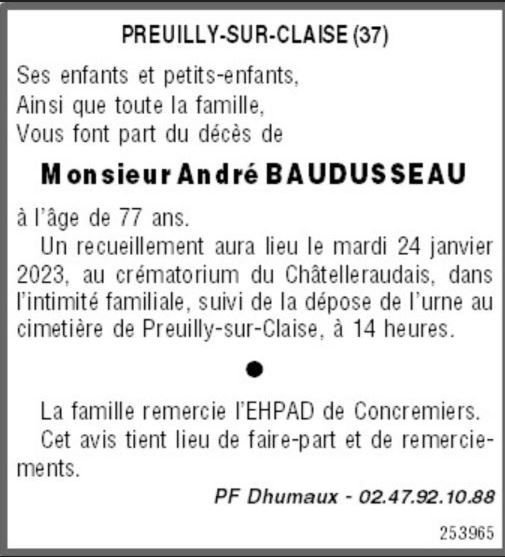 Monsieur André BAUDUSSEAU