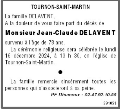 Décédé à Le Blanc (36300, France) le mardi 10 décembre 2024 à l'âge de 78 ans