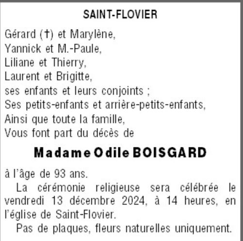 Décédée à Loches (37600, France) le lundi 9 décembre 2024 à l'âge de 93 ans